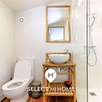 Zur Ausstattung des Badezimmers gehören auch eine getrennte Toilette und eine Dusche. Gäste profitieren auch von Badelaken und Hausschuhen.